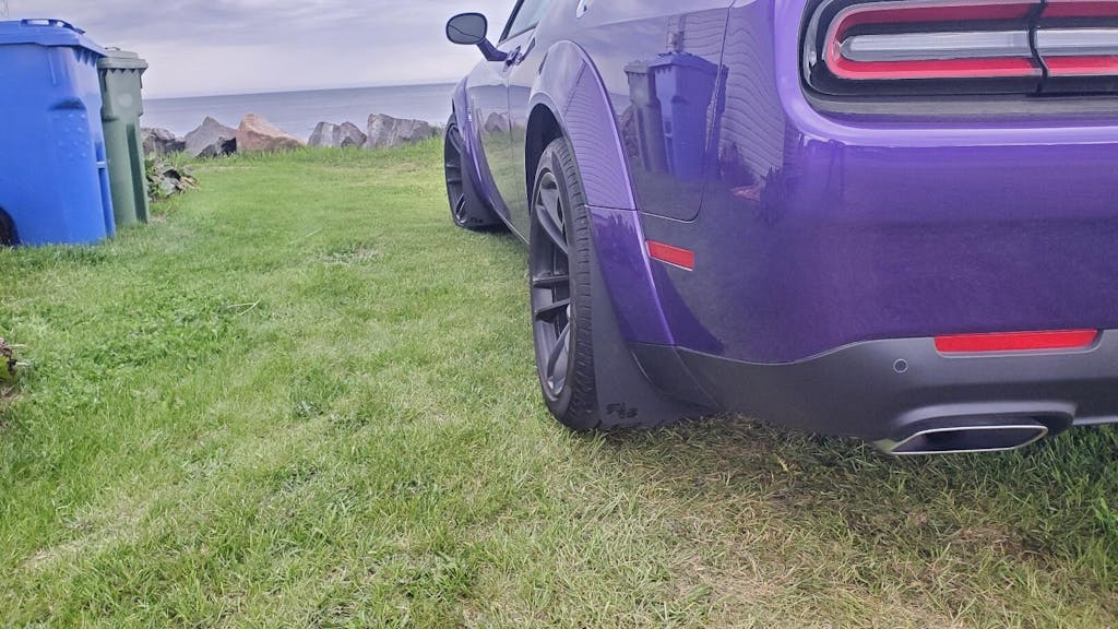 Each set of RokBlokz RALLY MUD FLAPS for the Dodge Challenger Widebody comes with 4 flaps, stainless steel and rust resistant mounting hardware, and instructions to fit factory holes locations.