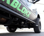 Specifically the combination of extreme durability, flexibility, lightweight, and rigidity that all come together to allow the flaps to extend out from the fender's edge enough to be effective, to hold their shape at speed and to block the most damaging kind of tire spray. Rokblokz F-250 SUPER DUTY mud flaps will bend, flex, give, and even scrape and drag without breakage. Doesn't matter if you're exploring the frozen tundra or the scorching hot desert, Rokblokz mud flaps will perform