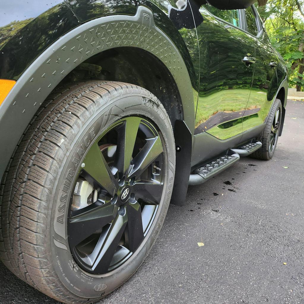 Specifically, the combination of extreme durability, flexibility, lightweight, and rigidity all come together to allow the flaps to extend out from the fender's edge enough to be effective, to hold their shape at speed, and to block the most damaging kind of tire spray. Rokblokz Hyundai Santa Cruz mud flaps will bend, flex, give, even scrape and drag without breakage. Doesn't matter if you're exploring the frozen tundra or the scorching hot desert, Rokblokz has you covered!