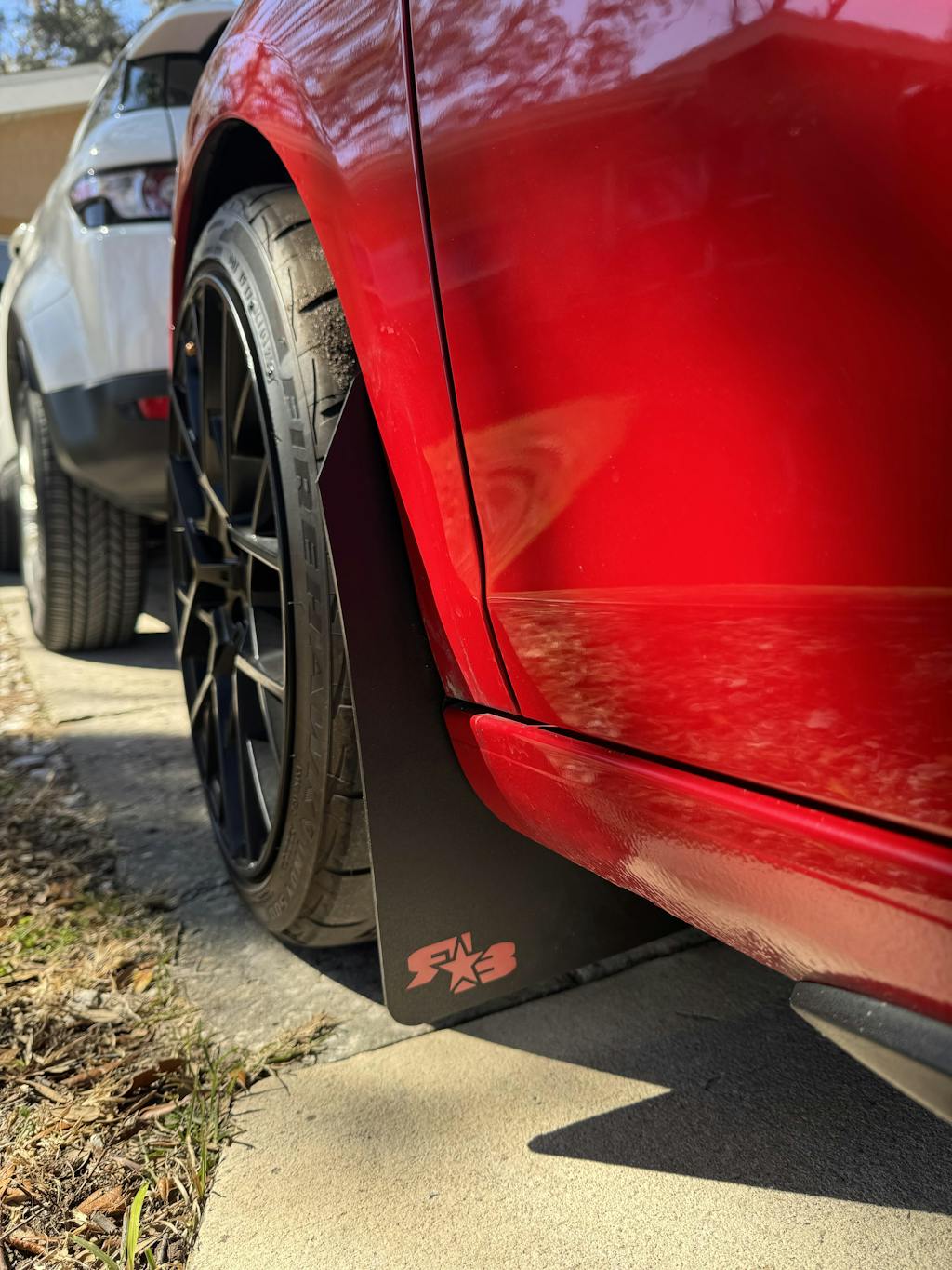 - Flexible but with a semi-rigid characteristic that allows them to retain their shape at speed and effectively block tire spray (we're not into flappy mud flaps).