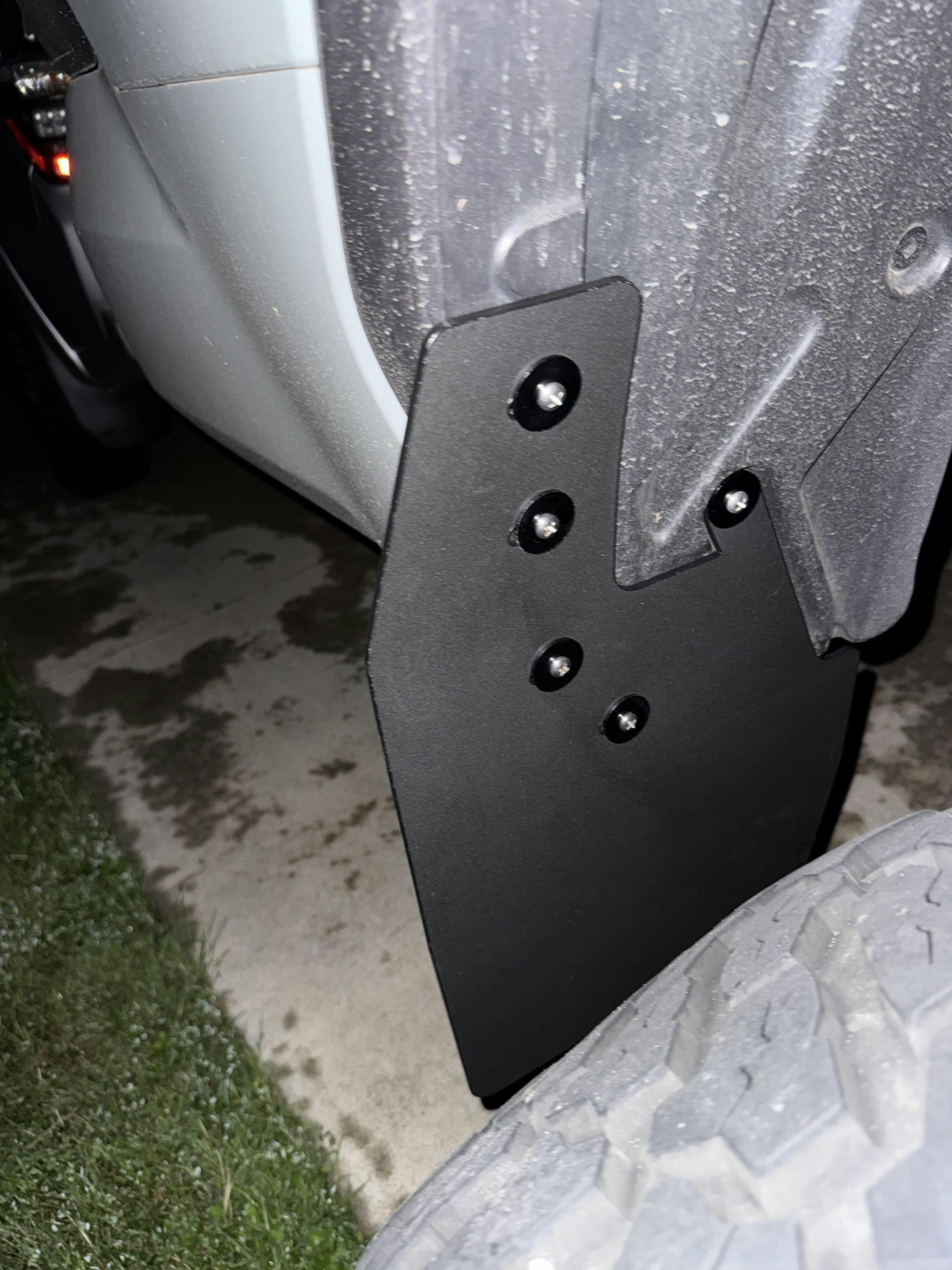- Flexible but with a semi-rigid characteristic that allows them to retain their shape at speed and effectively block tire spray (we're not into flappy mud flaps).