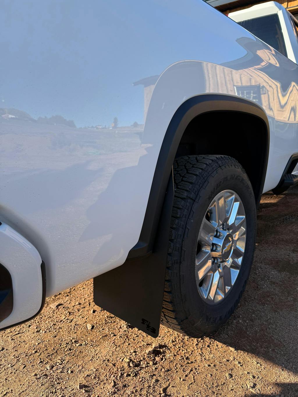 Whether you're hauling heavy loads, exploring backcountry trails, or cruising the highway, RokBlokz Mud Flaps are designed to keep your Silverado 2500HD & 3500HD cleaner and better protected. Engineered for those who demand both function and style, these flaps ensure your truck looks great and stays shielded from road hazards in any condition.
