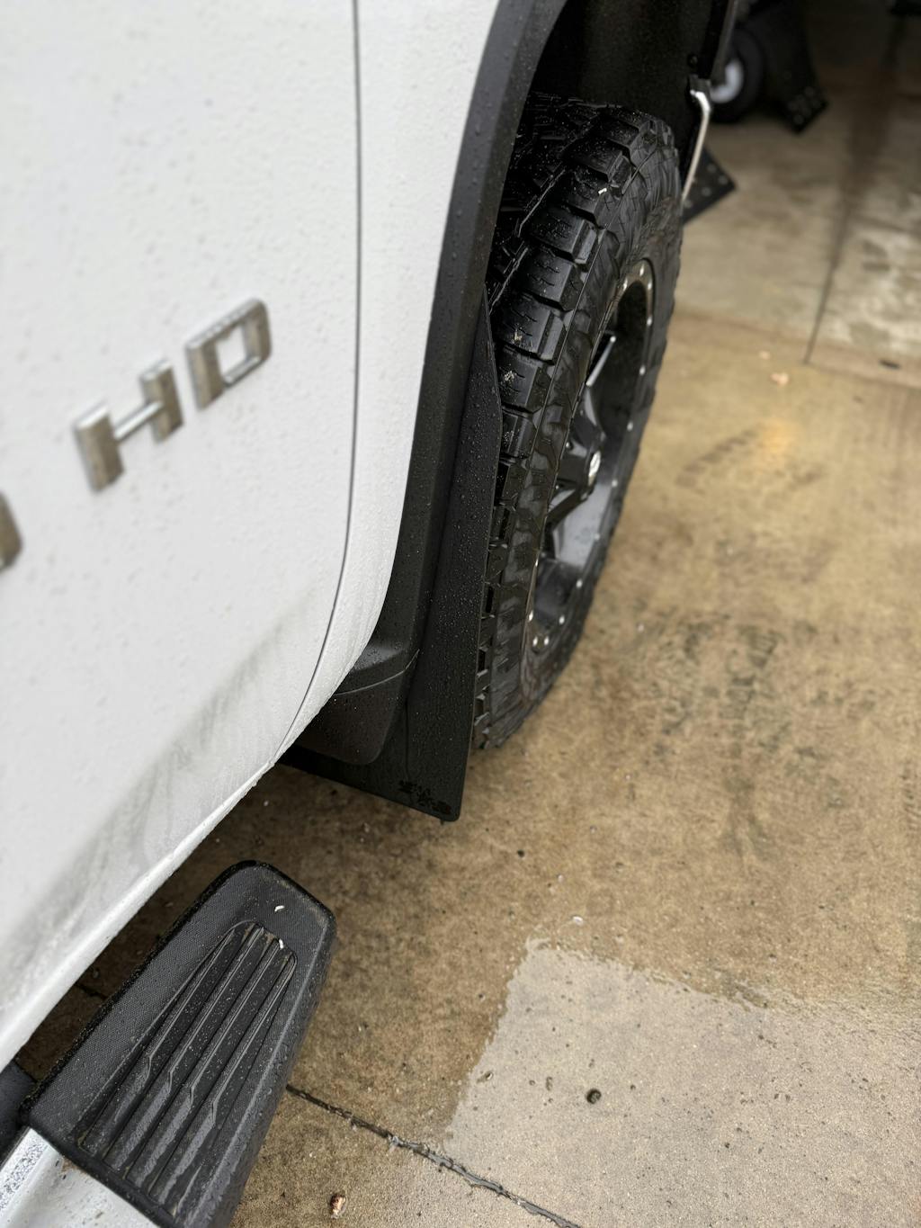 -RALLY FLAPS were designed for those who like to keep a stock wheel set up but want some paint protection. If your tires rub, you will need our hi clearance step-back kit. SEEN ON THE TRUCK IN THE PHOTOS.