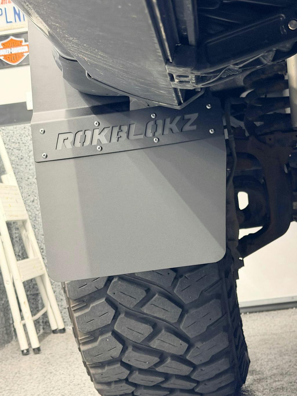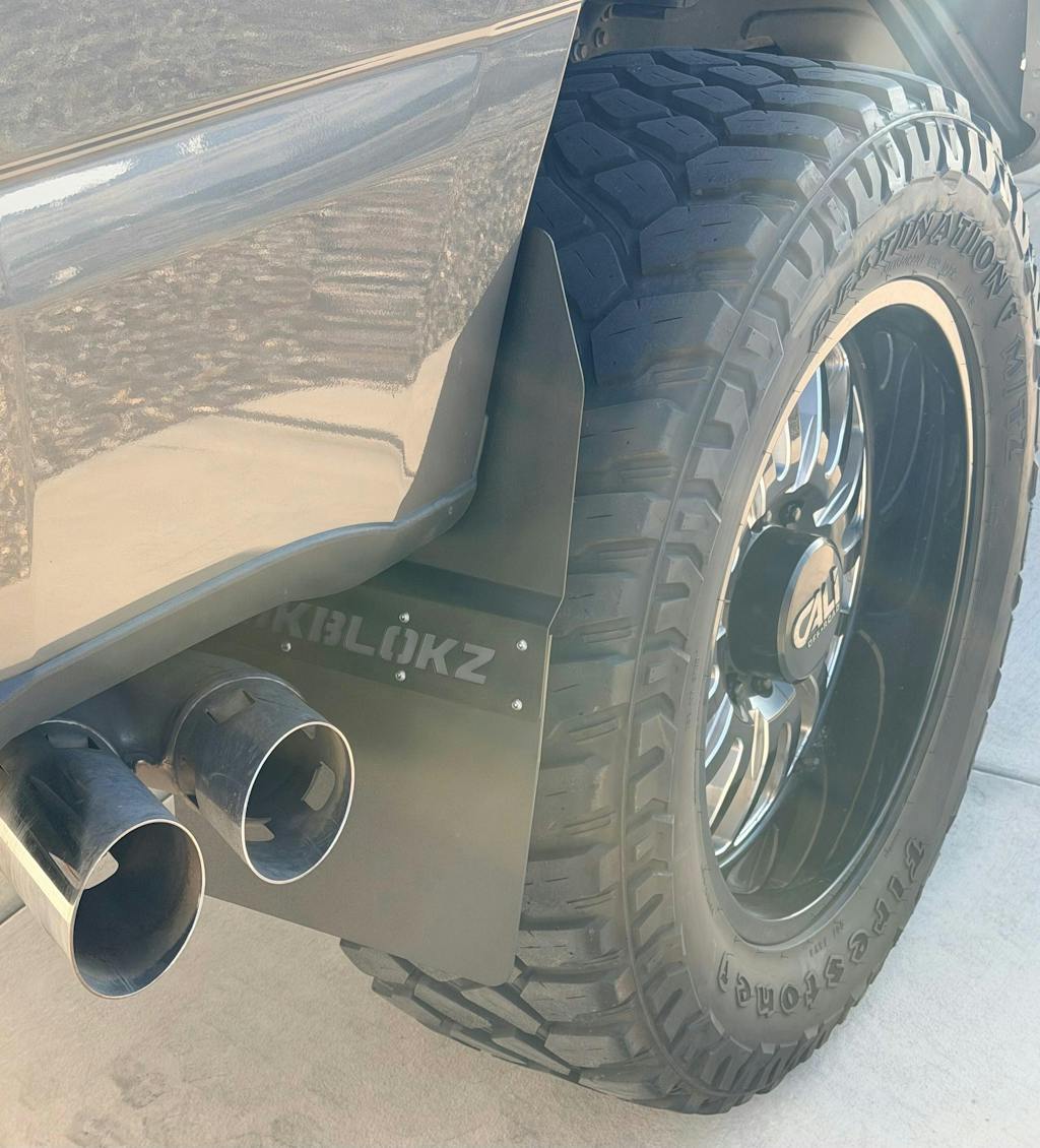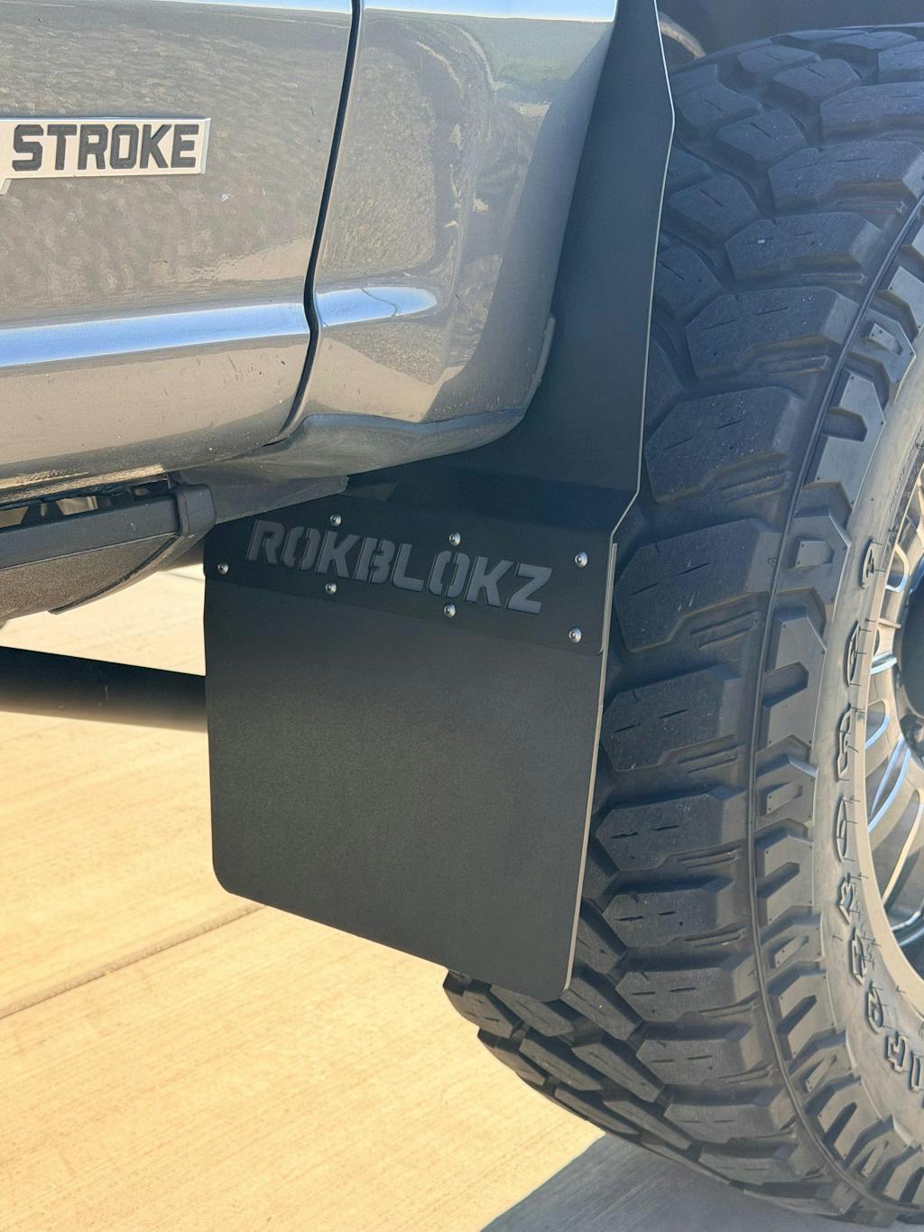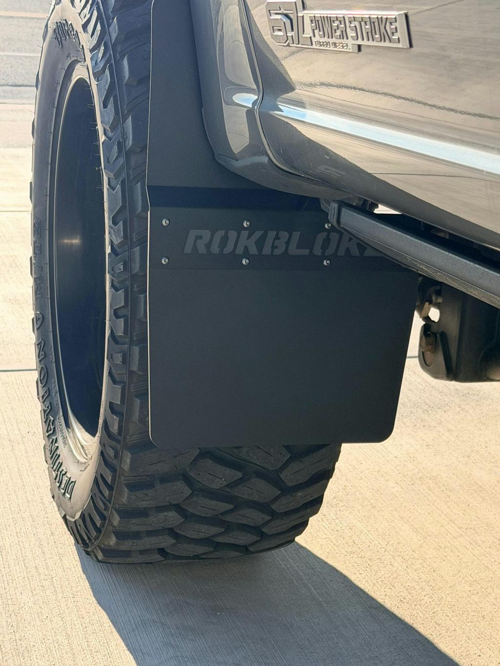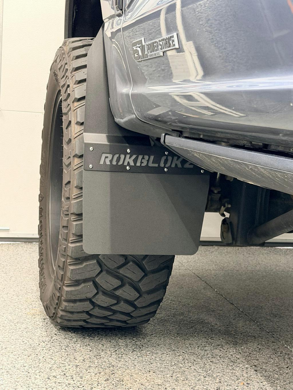 RokBlokz 2017+ Ford F-250/F-350 SRW Super Duty Step Back mud flaps are CNC laser cut from a proprietary material specifically designed to endure the harshest environments.