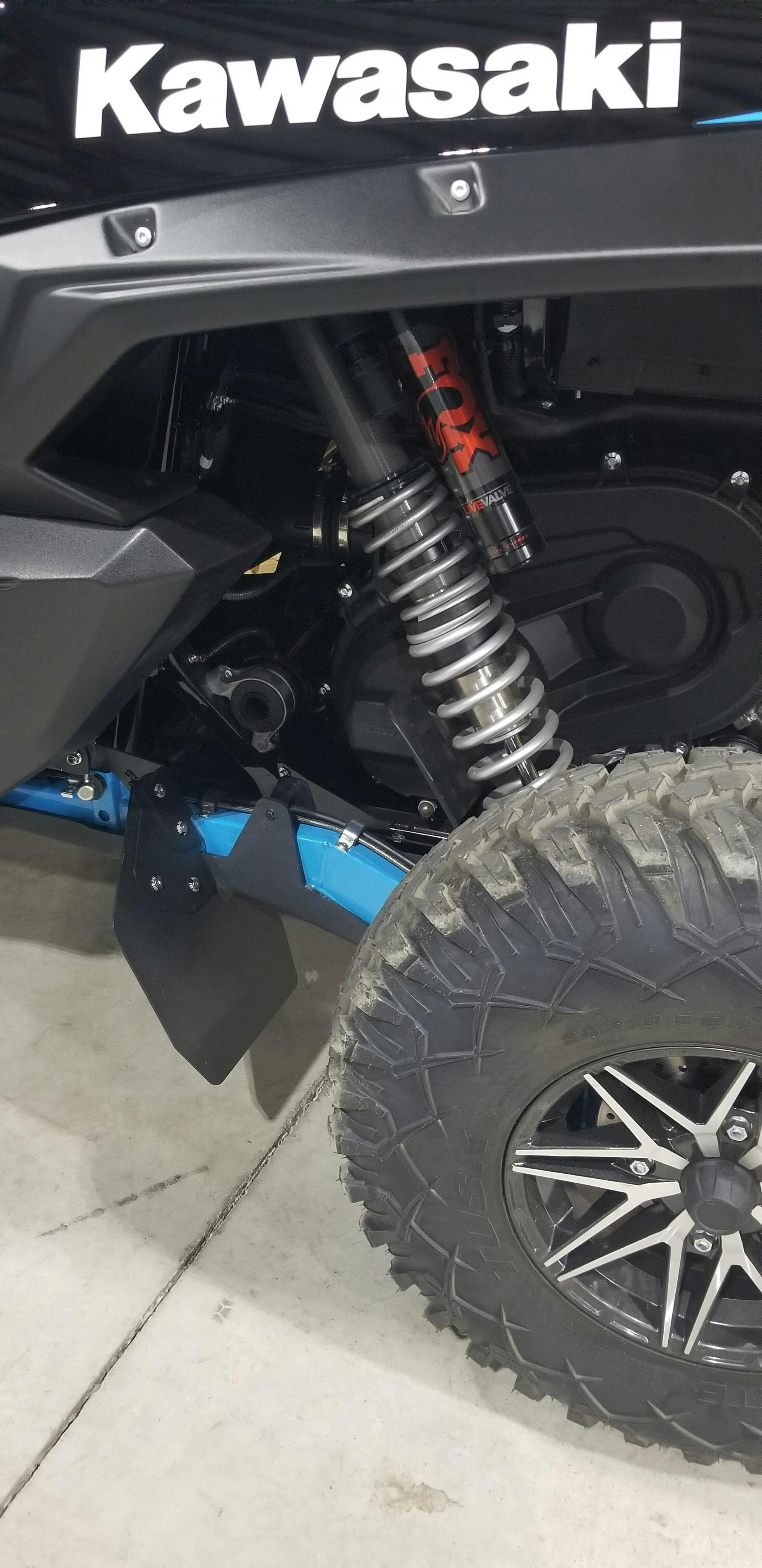 Each Rokblokz Trailing Arm Mud Flap kit for the KRX comes with 2 flaps, matte black brackets and hardware to mount your kit. This kit is designed to work with the stock Trailing arms on the 2020+ Kawasaki TERYX KRX 1000. They will work with the OEM tree kickers and the Trailing arm SKIDS. (Skids are not included)