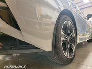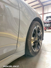 Each RokBlokz Mud Flap kit for the K5 Sedan comes with 4 flaps (2 front and 2 rear), stainless steel & rust-resistant mounting hardware, and instructions to fit factory hole locations.