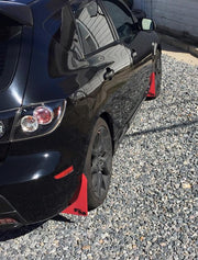 Rokblokz Mazda 3, Speed3 rally mud flaps are CNC laser cut from a proprietary material specifically designed to endure the harshest environments.