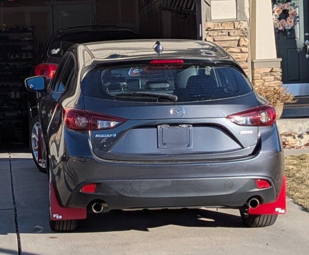 Each RokBlokz mud flap set for the 3rd Generation Mazda3 Hatchback & Sedan comes with 4 flaps, stainless steel & rust-resistant mounting hardware, and instructions to fit factory hole locations. *Requires drilling through the plastic fender liner for the rear flaps*