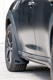 - Flexible but with a semi-rigid characteristic that allows them to retain their shape at speed and effectively block tire spray (we're not into flappy mud flaps).