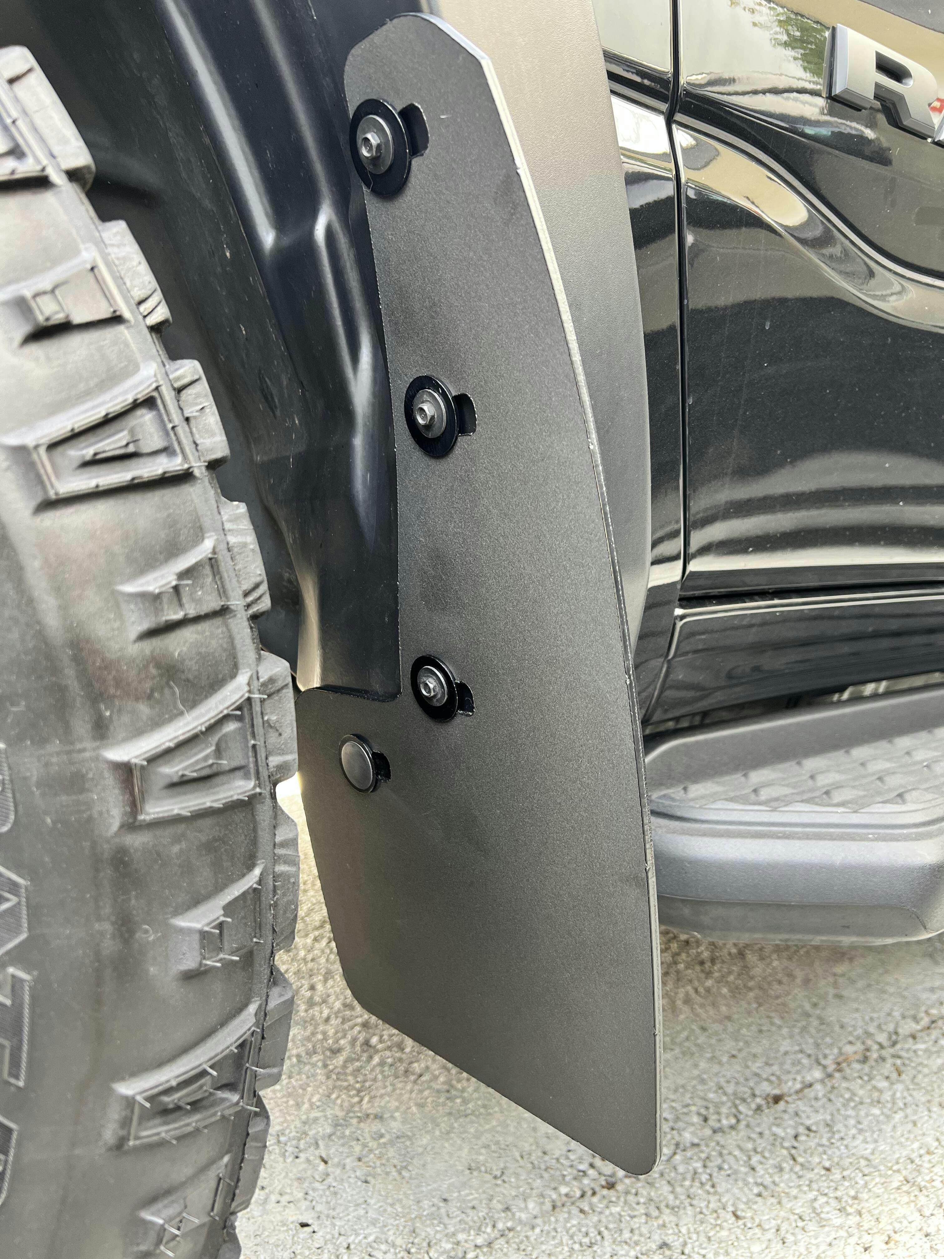 - Flexible but with a semi-rigid characteristic that allows them to retain their shape at speed and effectively block tire spray (we're not into flappy mud flaps).