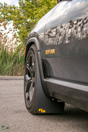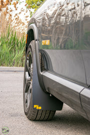 - Flexible but with a semi-rigid characteristic that allows them to retain their shape at speed and effectively block tire spray (we're not into flappy mud flaps).
