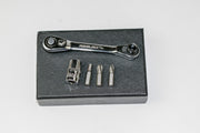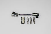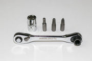 With a standard bit holder on one side and a 1/4" socket drive on the other, this tool is very versatile. Great for keeping in the toolbox or even the glove box.