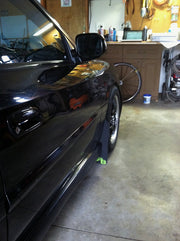 - Flexible but with a semi-rigid characteristic that allows them to retain their shape at speed and effectively block tire spray (we're not into flappy mud flaps).