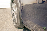 Rokblokz Rally Mud Flaps are CNC laser cut from a proprietary material specifically engineered to endure the harshest environments. Our proprietary material allows the mud flaps to be Extremely durable, flexible, lightweight, and rigid! They are designed to extend past the edge of the fender to offer extra protection from rocks and other road debris. These are the characteristics that when combined make the best rally mud flaps! So make your Tesla stand out with Rokblokz.