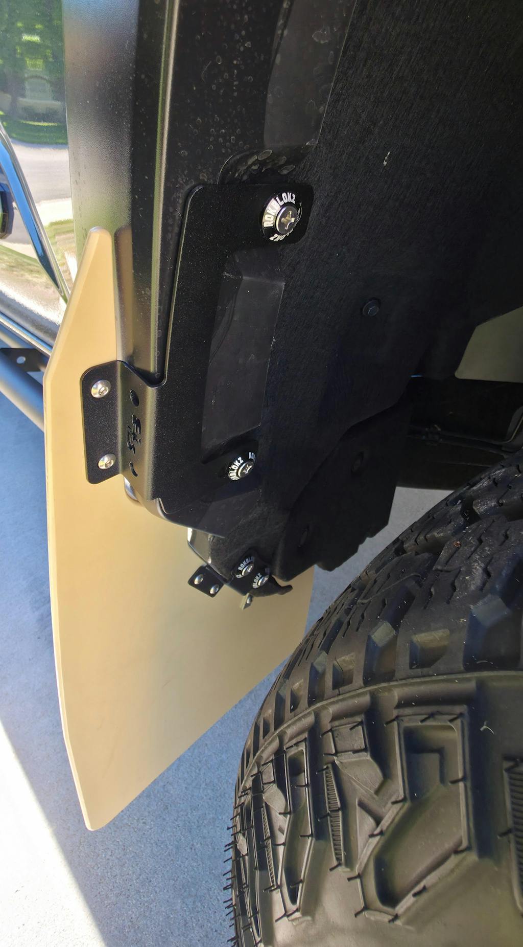 Constructed from our proprietary high-strength polymer blend, these mud flaps are made to withstand the harshest off-road conditions—whether you’re navigating rocky trails, muddy forest roads, or desert washes. The high-clearance design mounts just outside the wheel well, giving you excellent debris protection while allowing for larger tire setups—up to 35” tires comfortably.